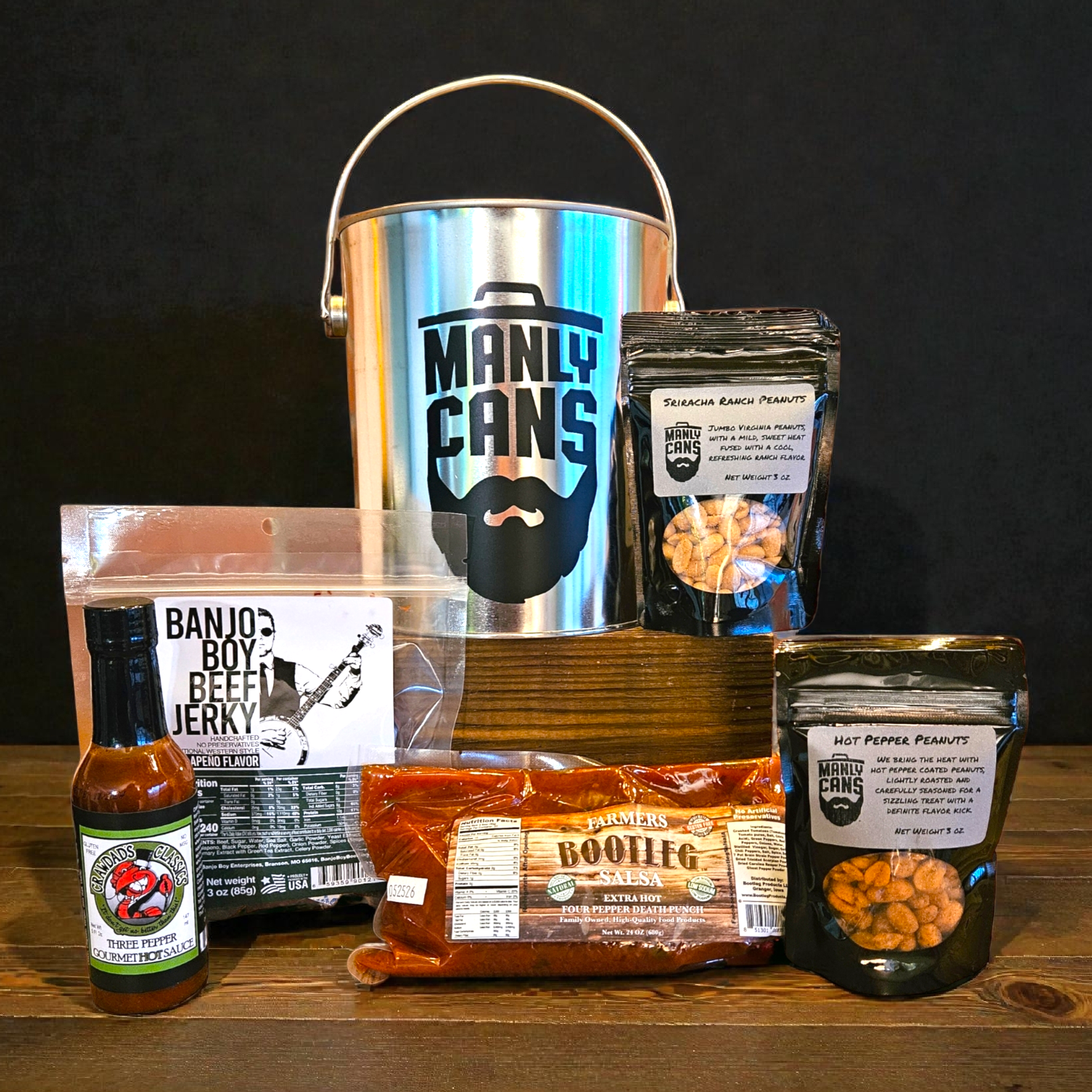With this Manly Can, the man in your life can stay “Smo’Can” Hot every season! For the spicy and fun-loving guy, the Smo’Can Hot Manly Can features products such as Crawdad’s Classics Hot Sauce and Bootleg Four Pepper Death Punch Salsa, along with hot pepper and sriracha peanuts and Banjo Boy jalapeno beef jerky. With close to ten different tasty items, this manly can is guaranteed to have his taste buds sizzlin’ with flavor and spice!
